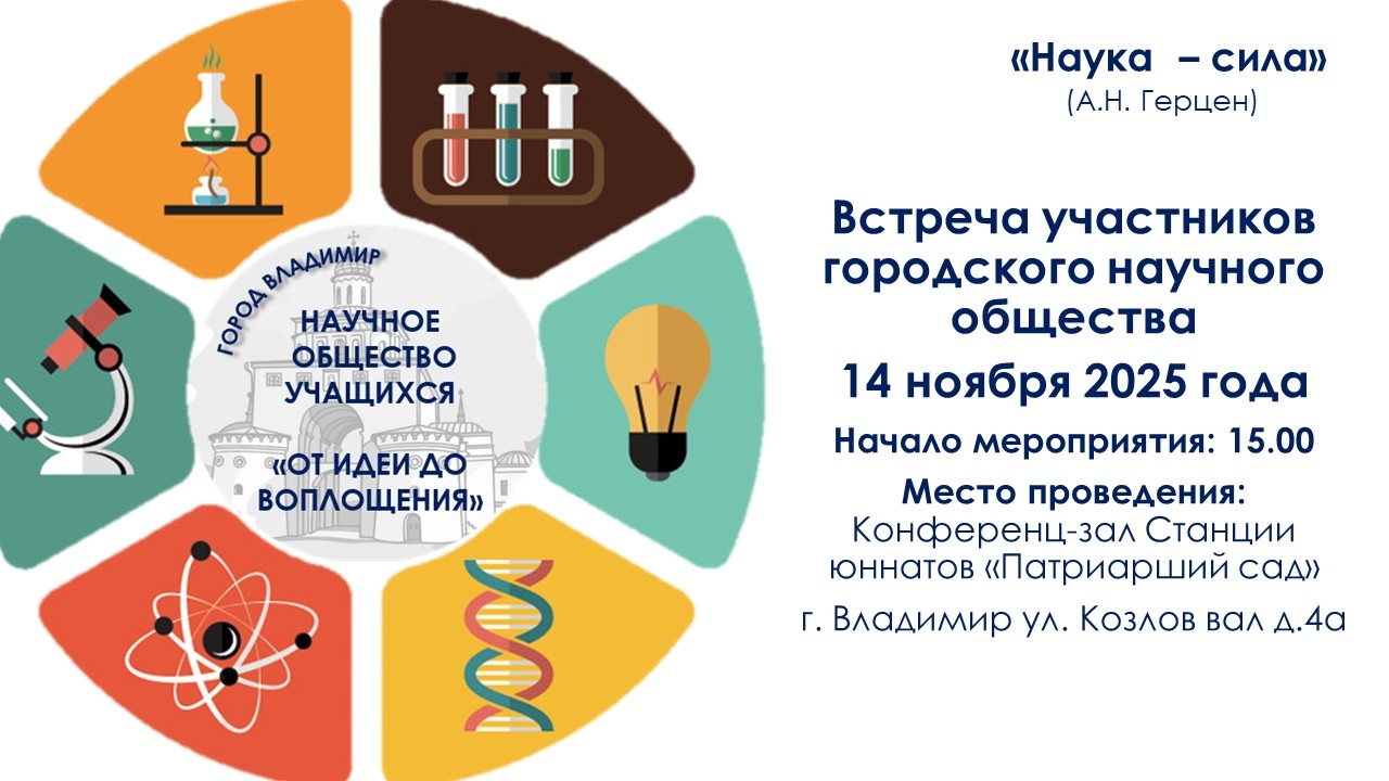 Станция юннатов «Патриарший сад» приглашает обучающихся школ на мероприятия в рамках работы городского научного общества обучающихся и педагогов г. Владимира «От идеи до воплощения».